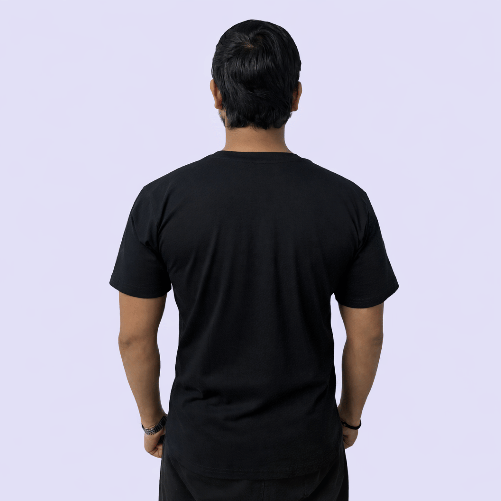 Elevate your everyday style with our black cotton t-shirt for men online, crafted using high-quality, breathable cotton fabric. This men black cotton tshirt offers superior comfort, making it perfect for long hours of wear—whether at the gym, outdoors, or at home.
