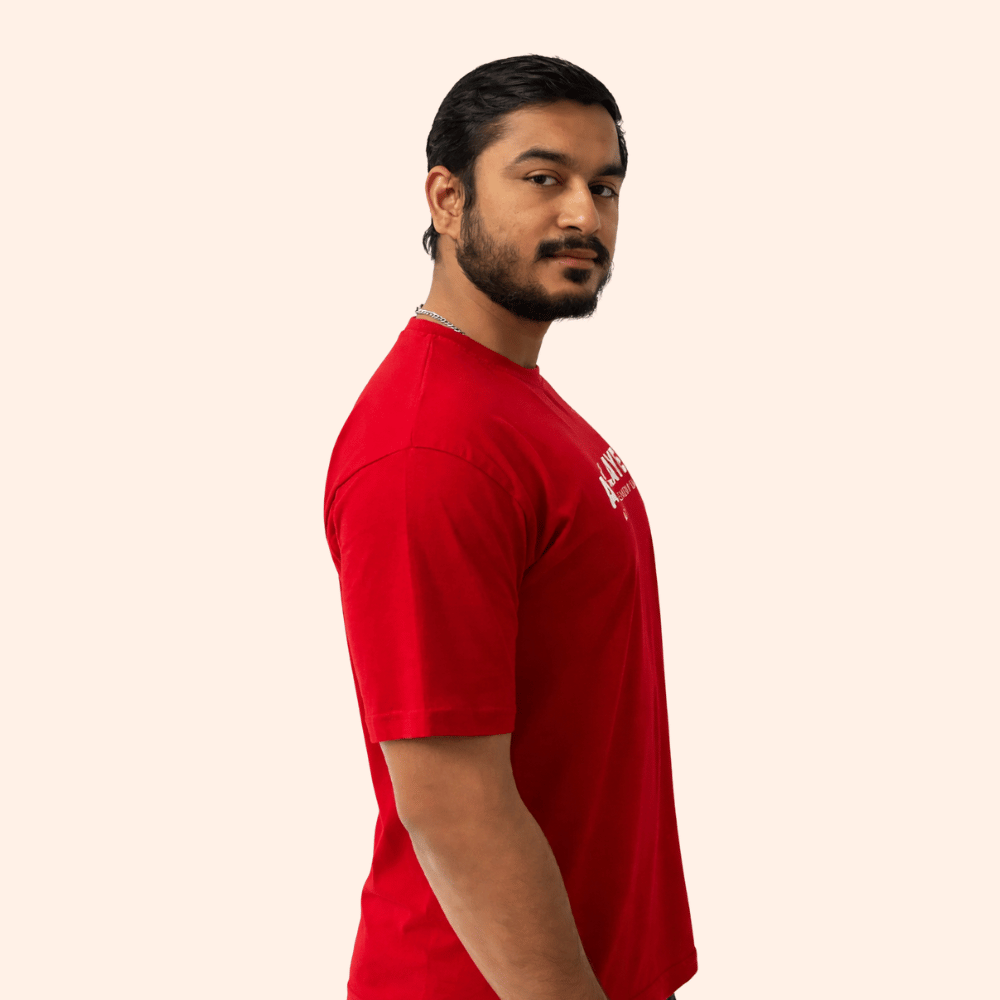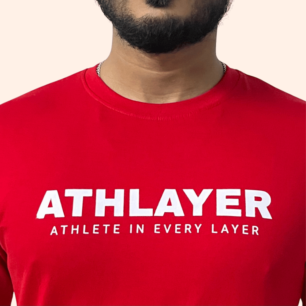 Push your performance forward with the ATHLAYER Red Cotton T-Shirt for Men, built for athletes who demand comfort and durability. Made from premium-quality cotton, this T-shirt offers excellent breathability and a soft feel against the skin, making it perfect for running, gym training, or everyday wear.
